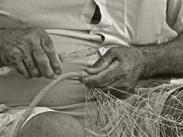 Mãos que dão ...conserto ... à rede ... trabalho duro ...espelhado nessas mãos ...
