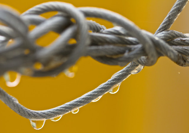 Este emaranhado de corda enfeitado por estas singelas gotas de água está um espanto, e o fundo num único tom ainda dá mais destaque a este "nó absurdo" :) Gostei!